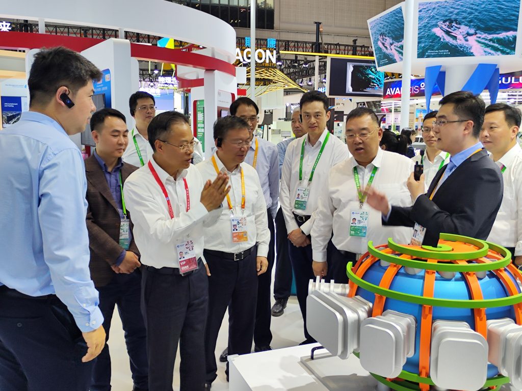2023年11月5日,第六届中国国际进口博览会在国家会展中心(上海)开幕。能量奇点携洪荒70高温超导托卡马克装置亮相进博会临港展示区。