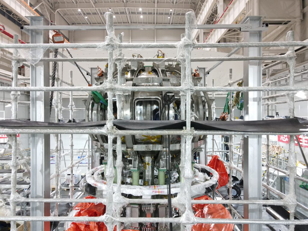 On January 11, 2024, the 12 toroidal field (TF) magnets of the Honghuang 70 high-temperature superconducting tokamak device were successfully assembled into a ring with the vacuum vessel and the inner cryogenic shield.